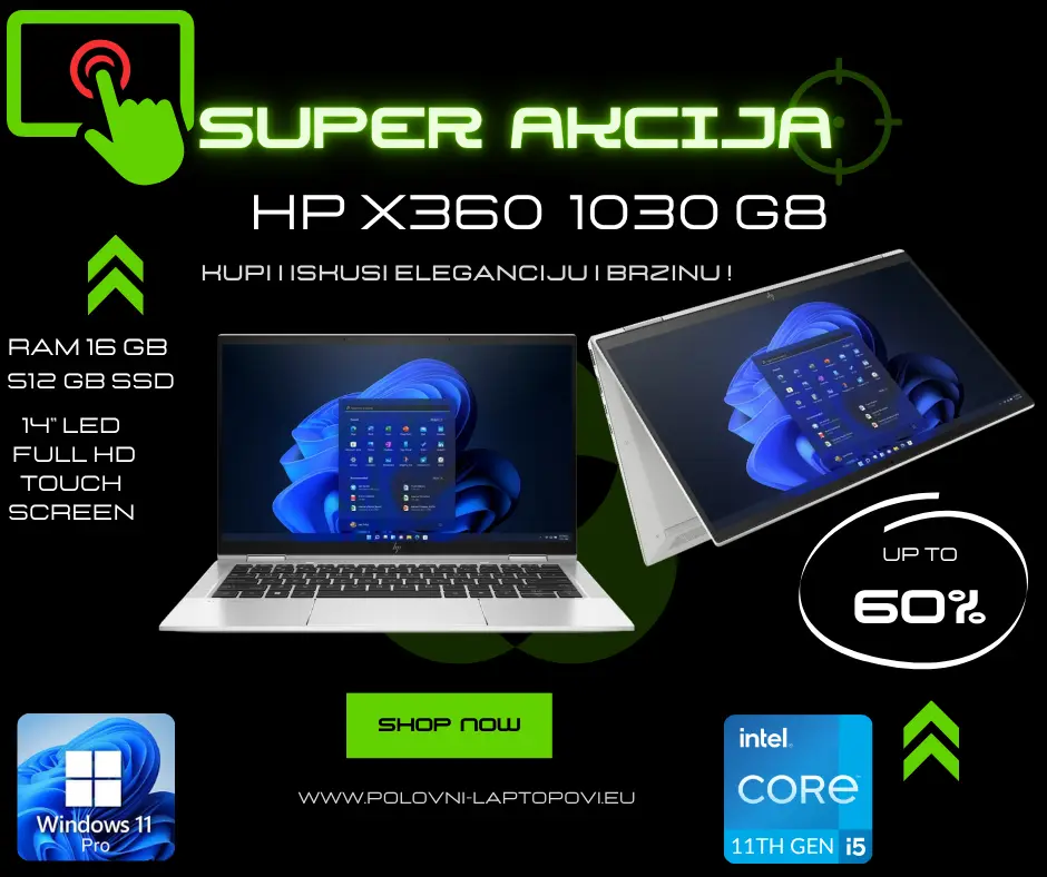HP EliteBook x360 1030 G8 je vrhunski premium ultrabook iz poslovne klase, napravljen za menadžere, kreativce i korisnike koji traže maksimalan kvalitet, sigurnost i stil.